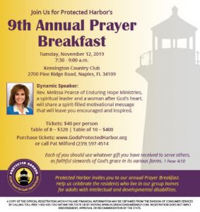Protected Harbor invites you to our annual Prayer Breakfast. Help us celebrate the residents who live in our group homes for adults with intellectual and developmental disabilities.