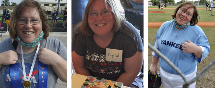 Nearly three years ago Crystal settled easily into what is now her permanent home where she feels stimulated, protected, and loved, surrounded by her new “brothers and sisters” as she affectionately refers to them. She doesn’t isolate herself, rather she participates in all the activities enthusiastically with the other residents. Her love of music and dancing is obvious, but she also loves sports and participates in golf, basketball, and bowling. A more recently acquired hobby has been her mosaics class. Despite this, she still enjoys having her private space, her own bedroom, desk, and TV.